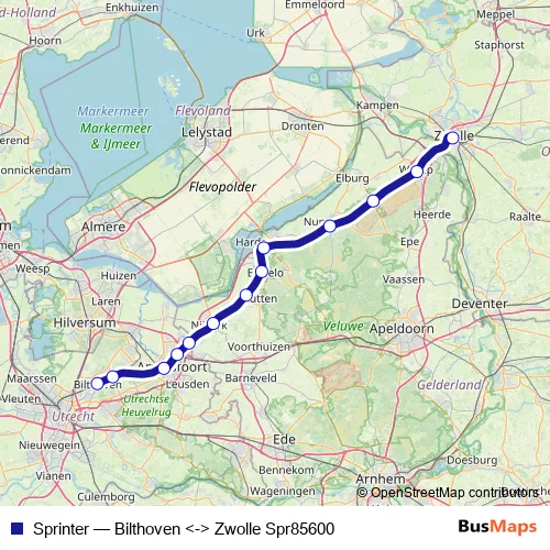 Click here to view the nearest Sprinter - Bilthoven <-> Zwolle Spr85600 rail stop.