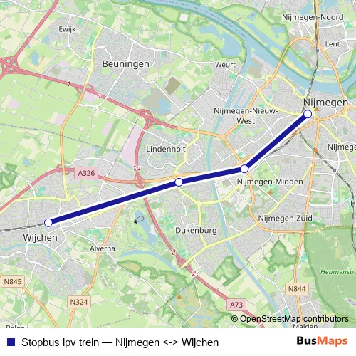 Click here to view the nearest Stopbus ipv trein - Nijmegen <-> Wijchen bus stop.