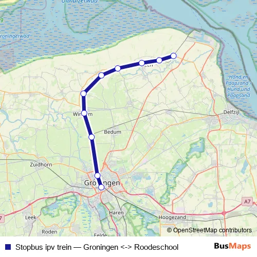 Stopbus ipv trein Bus - Groningen <-> Roodeschool