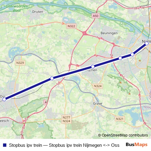 Click here to view the nearest Stopbus ipv trein - Stopbus ipv trein Nijmegen <-> Oss bus stop.