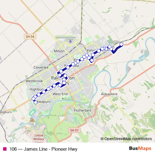 See why over 2 million users trust and consider busmaps.com as the best public transport website. busmaps gives you Palmerston North Buses suggested routes, real-time bus tracker, line route maps in Palmerston North, and helps to find the closest 106 bus stops near you. No internet available? Download an offline PDF map and bus schedule for the 106 bus to take on your trip.