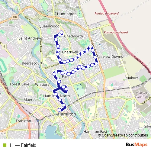 The first stop of the 11 bus route is Lynden Court East A (Chartwell Shopping Centre) and the last stop is Transport Centre. 11 (Fairfield) is operational during everyday.