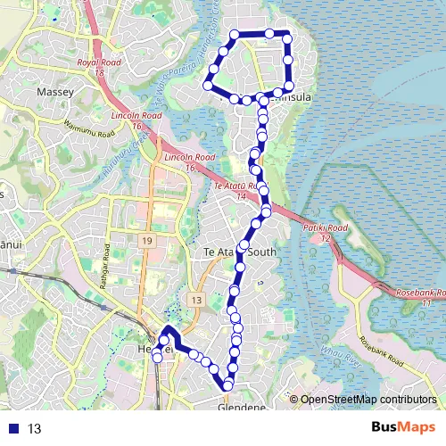 See why over 2 million users trust and consider busmaps.com as the best public transport website. busmaps gives you Auckland Buses suggested routes, real-time bus tracker, line route maps in Auckland, and helps to find the closest 13 bus stops near you. No internet available? Download an offline PDF map and bus schedule for the 13 bus to take on your trip.