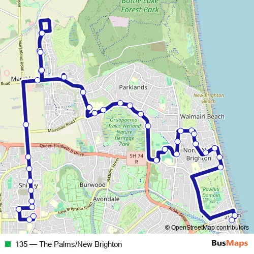 Bus 135 - The Palms/New Brighton: Full Schedule in Christchurch