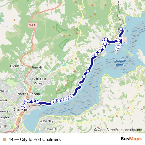Click here to view the nearest 14 - City to Port Chalmers bus stop.