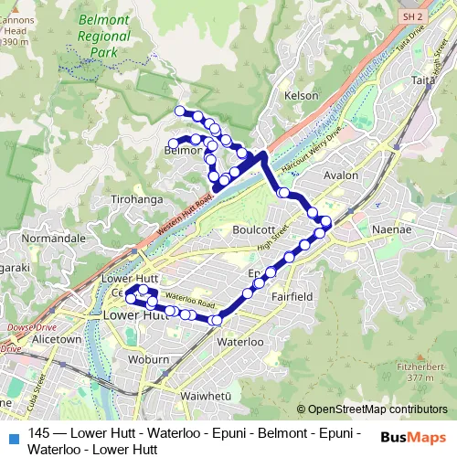 Click here to view the nearest 145 - Lower Hutt - Waterloo - Epuni - Belmont - Epuni - Waterloo - Lower Hutt bus stop.