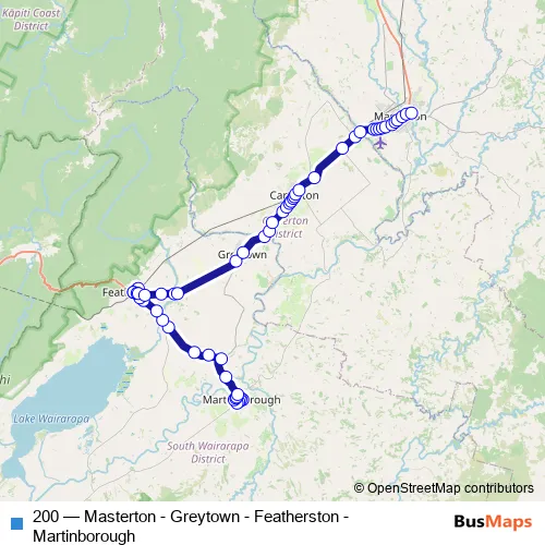 See why over 2 million users trust and consider busmaps.com as the best public transport website. busmaps gives you Masterton Buses suggested routes, real-time bus tracker, line route maps in Masterton, and helps to find the closest 200 bus stops near you. No internet available? Download an offline PDF map and bus schedule for the 200 bus to take on your trip.