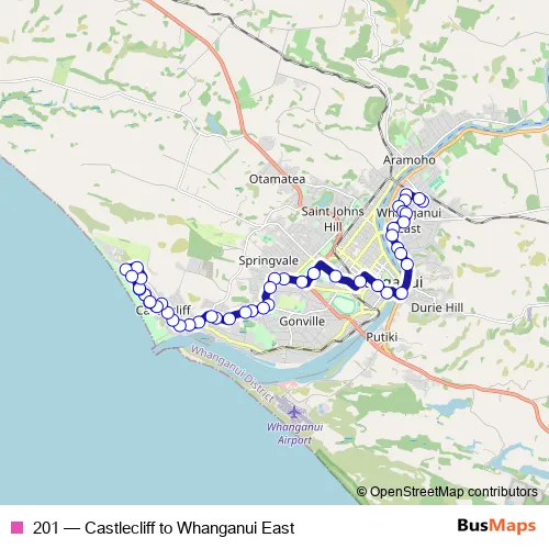 Click here to view the nearest 201 - Castlecliff to Whanganui East bus stop.