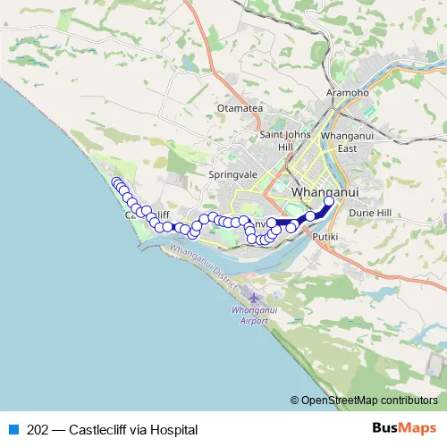Bus 202 - Castlecliff via Hospital in Whanganui: Stops & Timetable
