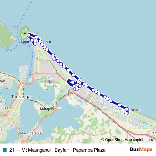 Bus 21 - Mt Maunganui - Bayfair - Papamoa Plaza in Tauranga: Stops & Timetable