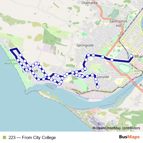 See why over 2 million users trust and consider busmaps.com as the best public transport website. busmaps gives you Whanganui Buses suggested routes, real-time bus tracker, line route maps in Whanganui, and helps to find the closest 223 bus stops near you. No internet available? Download an offline PDF map and bus schedule for the 223 bus to take on your trip.