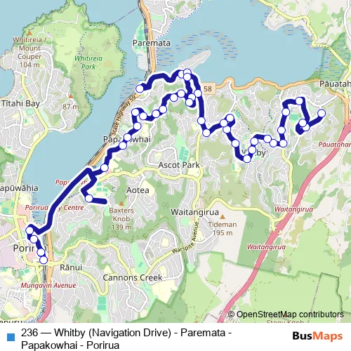 Bus 236 - Whitby (Navigation Drive) - Paremata - Papakowhai - Porirua in Wellington: Stops & Timetable