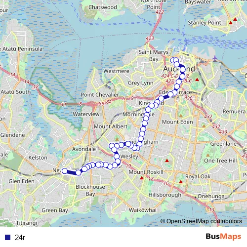 See why over 2 million users trust and consider busmaps.com as the best public transport website. busmaps gives you Auckland Buses suggested routes, real-time bus tracker, line route maps in Auckland, and helps to find the closest 24r bus stops near you. No internet available? Download an offline PDF map and bus schedule for the 24r bus to take on your trip.