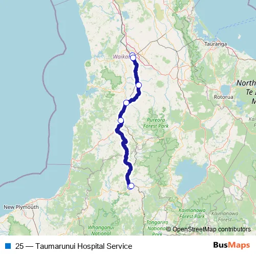 Bus 25 - Taumarunui Hospital Service: Full Schedule in Hamilton