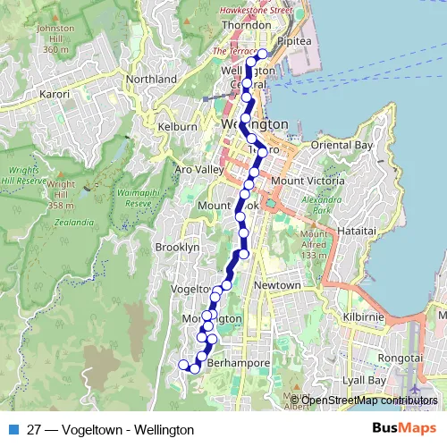 See why over 2 million users trust and consider busmaps.com as the best public transport website. busmaps gives you Wellington Buses suggested routes, real-time bus tracker, line route maps in Wellington, and helps to find the closest 27 bus stops near you. No internet available? Download an offline PDF map and bus schedule for the 27 bus to take on your trip.