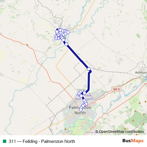 Click here to view the nearest 311 - Feilding - Palmerston North bus stop.