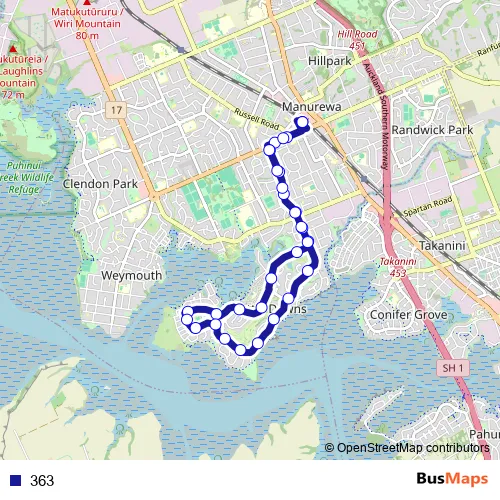 See why over 2 million users trust and consider busmaps.com as the best public transport website. busmaps gives you Auckland Buses suggested routes, real-time bus tracker, line route maps in Auckland, and helps to find the closest 363 bus stops near you. No internet available? Download an offline PDF map and bus schedule for the 363 bus to take on your trip.