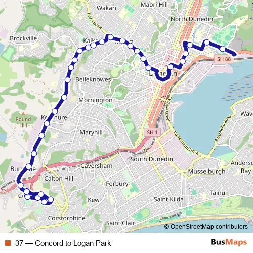 See why over 2 million users trust and consider busmaps.com as the best public transport website. busmaps gives you Dunedin Buses suggested routes, real-time bus tracker, line route maps in Dunedin, and helps to find the closest 37 bus stops near you. No internet available? Download an offline PDF map and bus schedule for the 37 bus to take on your trip.
