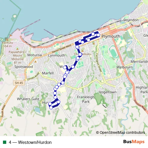 See why over 2 million users trust and consider busmaps.com as the best public transport website. busmaps gives you New Plymouth Buses suggested routes, real-time bus tracker, line route maps in New Plymouth, and helps to find the closest 4 bus stops near you. No internet available? Download an offline PDF map and bus schedule for the 4 bus to take on your trip.