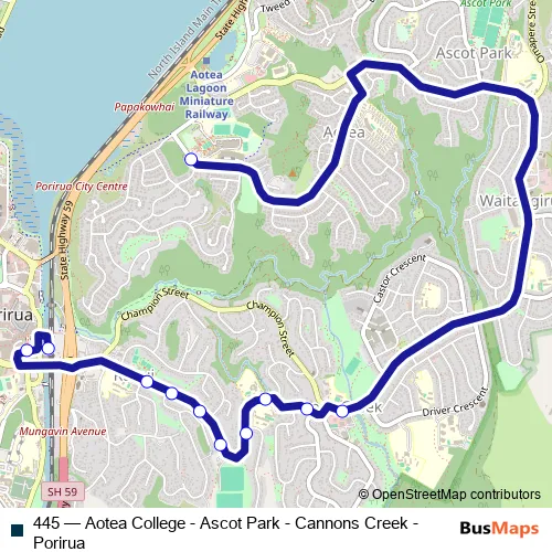 Click here to view the nearest 445 - Aotea College - Ascot Park - Cannons Creek - Porirua bus stop.