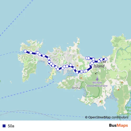 The first stop of the 50a bus route is Matiatia Terminal and the last stop is Piemelon Bay Road. 50a is operational during everyday.