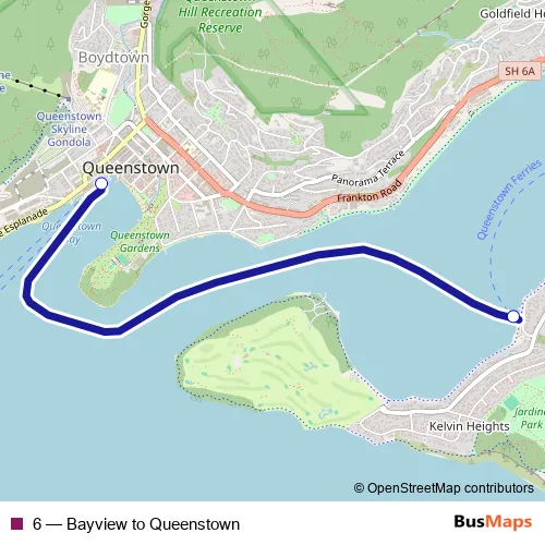 Services on the 6 - Bayview to Queenstown ferry stop at 07:40 on Monday, Tuesday, Wednesday, Thursday, Friday, Saturday, Sunday.