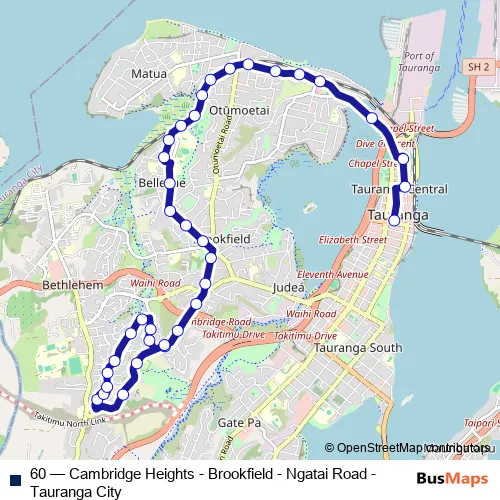 See why over 2 million users trust and consider busmaps.com as the best public transport website. busmaps gives you Tauranga Buses suggested routes, real-time bus tracker, line route maps in Tauranga, and helps to find the closest 60 bus stops near you. No internet available? Download an offline PDF map and bus schedule for the 60 bus to take on your trip.