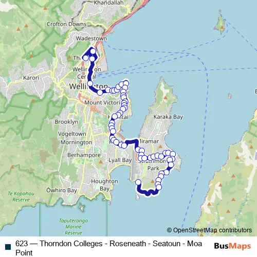 Click here to view the nearest 623 - Thorndon Colleges - Roseneath - Seatoun - Moa Point bus stop.