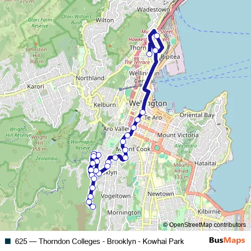 Bus 625 - Thorndon Colleges - Brooklyn - Kowhai Park: Full Schedule in Wellington