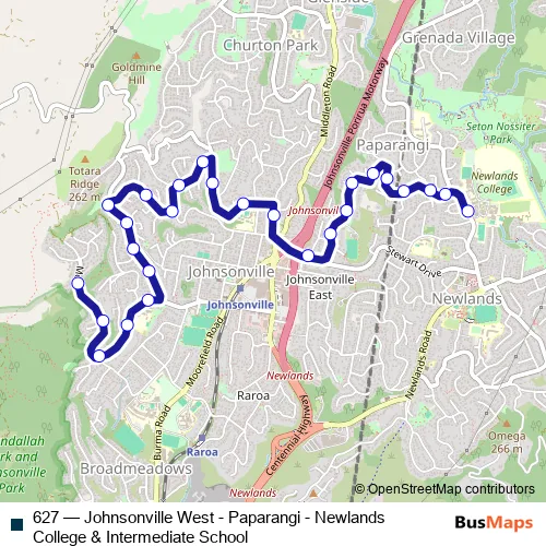 Bus 627 - Johnsonville West - Paparangi - Newlands College & Intermediate School in Wellington: Stops & Timetable