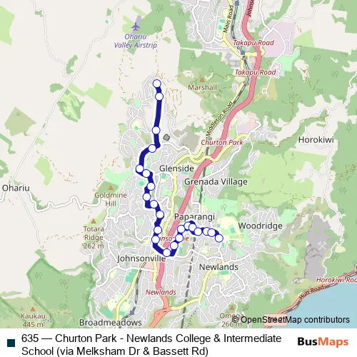 Bus 635 - Churton Park - Newlands College & Intermediate School (via Melksham Dr & Bassett Rd) in Wellington: Stops & Timetable