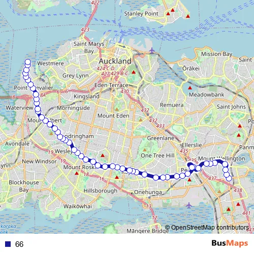 See why over 2 million users trust and consider busmaps.com as the best public transport website. busmaps gives you Auckland Buses suggested routes, real-time bus tracker, line route maps in Auckland, and helps to find the closest 66 bus stops near you. No internet available? Download an offline PDF map and bus schedule for the 66 bus to take on your trip.
