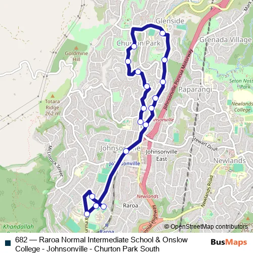 Bus 682 - Raroa Normal Intermediate School & Onslow College - Johnsonville - Churton Park South in Wellington: Stops & Timetable