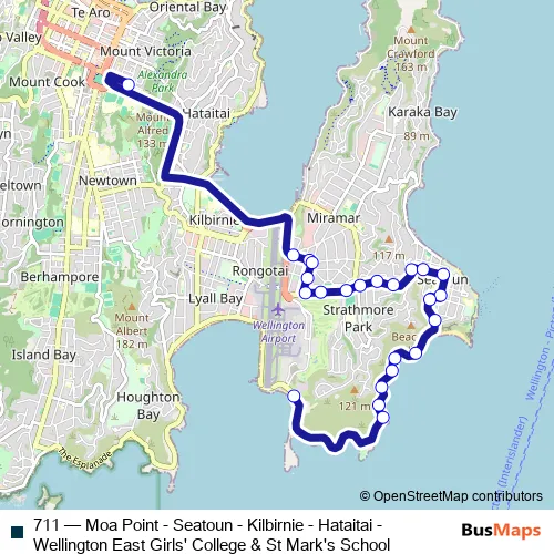 Bus 711 - Moa Point - Seatoun - Kilbirnie - Hataitai - Wellington East Girls' College & St Mark's School Schedule in Wellington