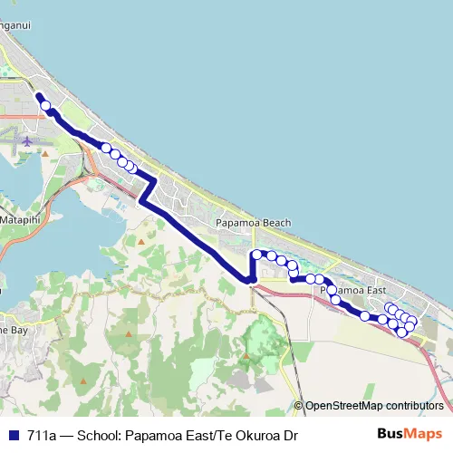 Mount Maunganui College. 711a (School: Papamoa East/Te Okuroa Dr) is operational during on weekdays.