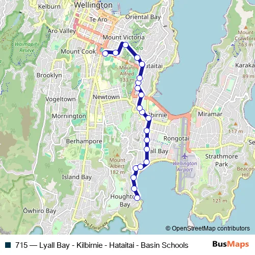 Click here to view the nearest 715 - Lyall Bay - Kilbirnie - Hataitai - Basin Schools bus stop.