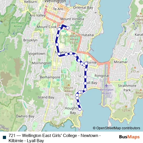 Click here to view the nearest 721 - Wellington East Girls' College - Newtown - Kilbirnie - Lyall Bay bus stop.