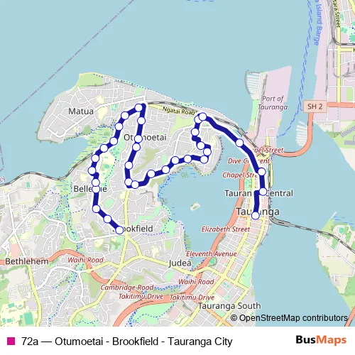 Bus 72a - Otumoetai - Brookfield - Tauranga City in Tauranga: Stops & Timetable