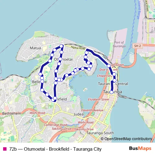 Bus 72b - Otumoetai - Brookfield - Tauranga City in Tauranga: Stops & Timetable