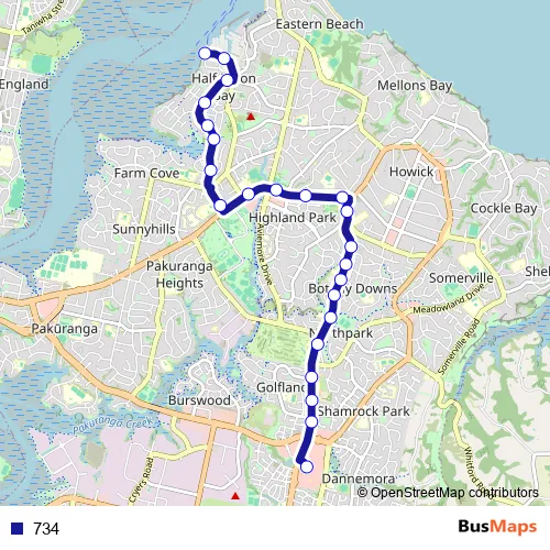 The first stop of the 734 bus route is Half Moon Bay Terminal and the last stop is Stop B Botany Town Centre. 734 is operational during everyday.
