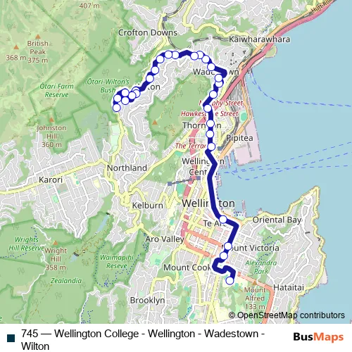 Click here to view the nearest 745 - Wellington College - Wellington - Wadestown - Wilton bus stop.