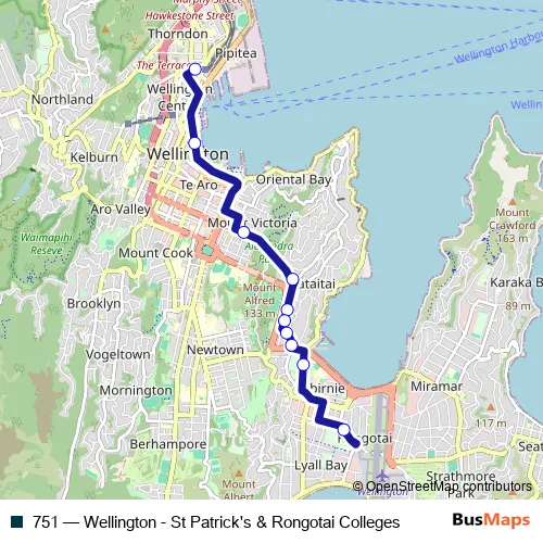 Click here to view the nearest 751 - Wellington - St Patrick's & Rongotai Colleges bus stop.