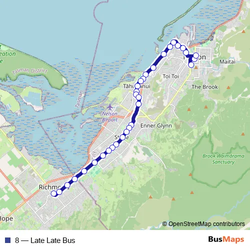 Bus 8 - Late Late Bus in Nelson: Stops & Timetable