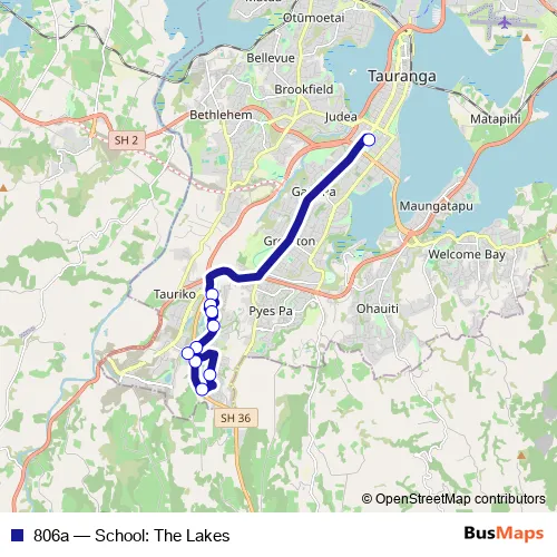 See why over 2 million users trust and consider busmaps.com as the best public transport website. busmaps gives you Tauranga Buses suggested routes, real-time bus tracker, line route maps in Tauranga, and helps to find the closest 806a bus stops near you. No internet available? Download an offline PDF map and bus schedule for the 806a bus to take on your trip.
