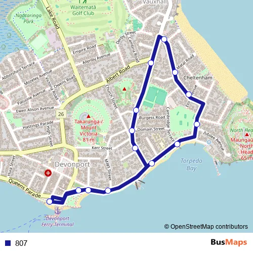 The first stop of the 807 bus route is Devonport Terminal and the last stop is Devonport Terminal. 807 is operational during everyday.