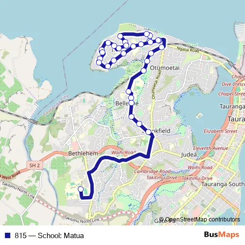 See why over 2 million users trust and consider busmaps.com as the best public transport website. busmaps gives you Tauranga Buses suggested routes, real-time bus tracker, line route maps in Tauranga, and helps to find the closest 815 bus stops near you. No internet available? Download an offline PDF map and bus schedule for the 815 bus to take on your trip.