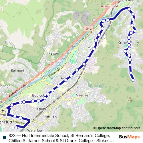 Click here to view the nearest 823 - Hutt Intermediate School, St Bernard's College, Chilton St James School & St Oran’s College - Stokes Valley bus stop.