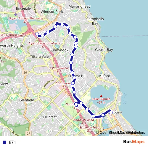 See why over 2 million users trust and consider busmaps.com as the best public transport website. busmaps gives you Auckland Buses suggested routes, real-time bus tracker, line route maps in Auckland, and helps to find the closest 871 bus stops near you. No internet available? Download an offline PDF map and bus schedule for the 871 bus to take on your trip.