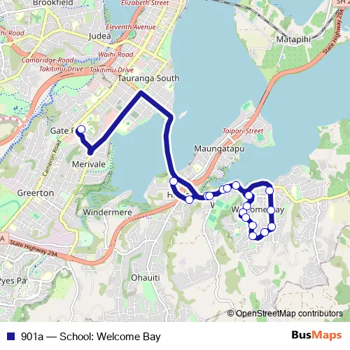 Hairini Street. 901a (School: Welcome Bay) is operational during on weekdays.