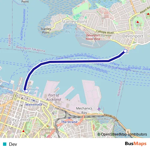 See why over 2 million users trust and consider busmaps.com as the best public transport website. busmaps gives you Auckland Ferries suggested routes, real-time bus tracker, line route maps in Auckland, and helps to find the closest Dev ferry stops near you. No internet available? Download an offline PDF map and bus schedule for the Dev ferry to take on your trip.